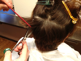 毛根の流れに沿って根元に特殊なハサミを通します。